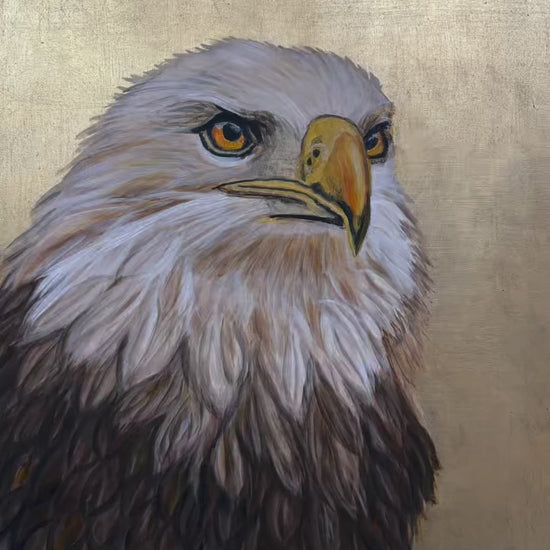 Number one in the "Gilded Virtues" series honoring enduring human strengths reflected through iconic American wildlife. Each painting is created on gold leaf and framed in a rustic gold frame, where the surface catches and shifts with light — evoking open plains, wide horizons, and the quiet radiance of the land.